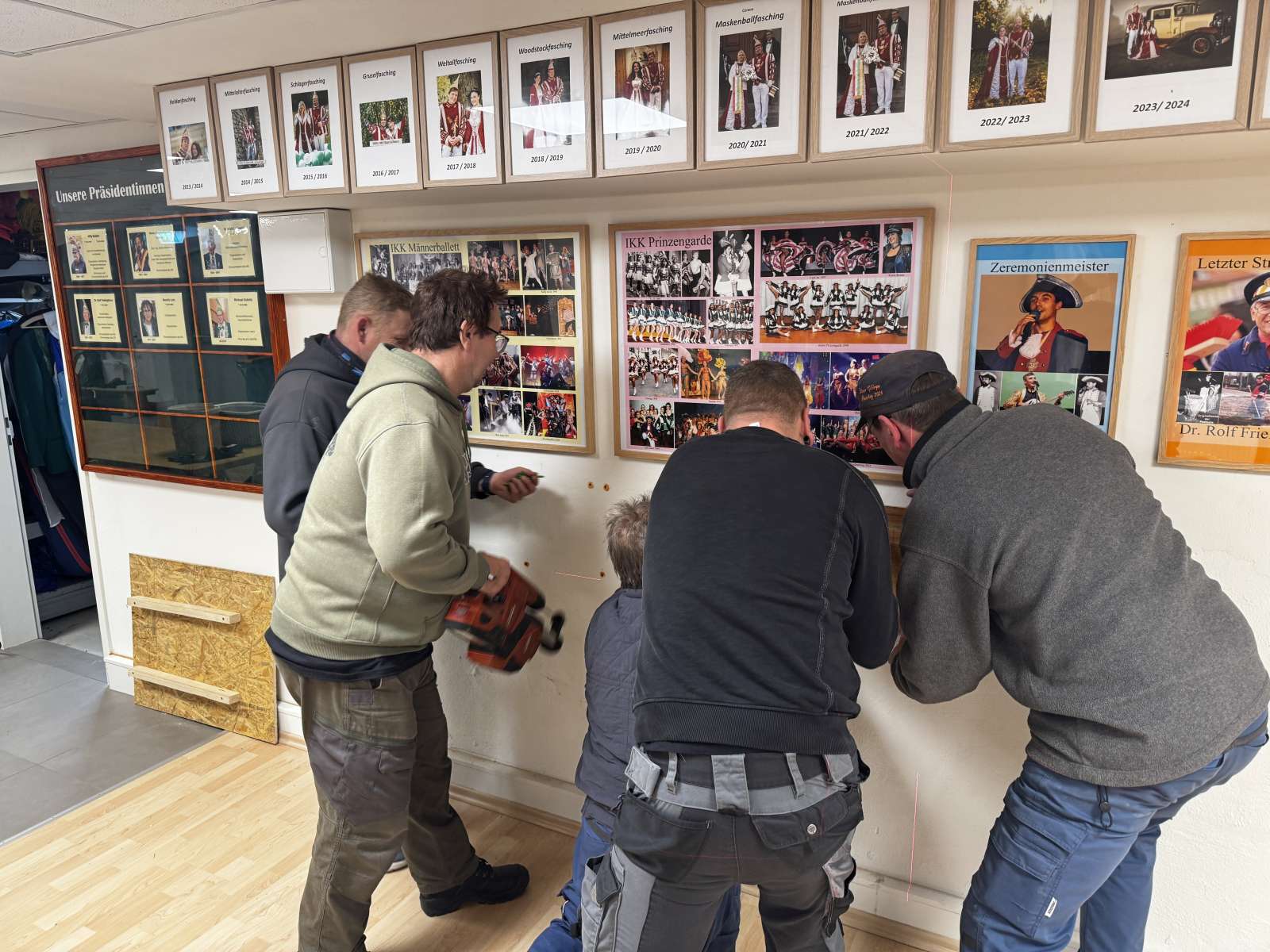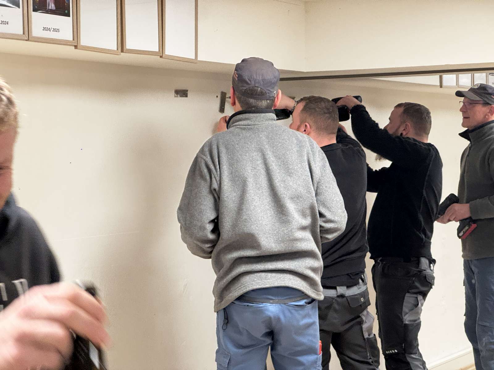 Ein großes Danke an das Fundusteam für Bohrstaub, mathematische Höchstleistungen und eine Wand, die jetzt so gut aussieht, dass sie eigentlich Applaus verdient.
